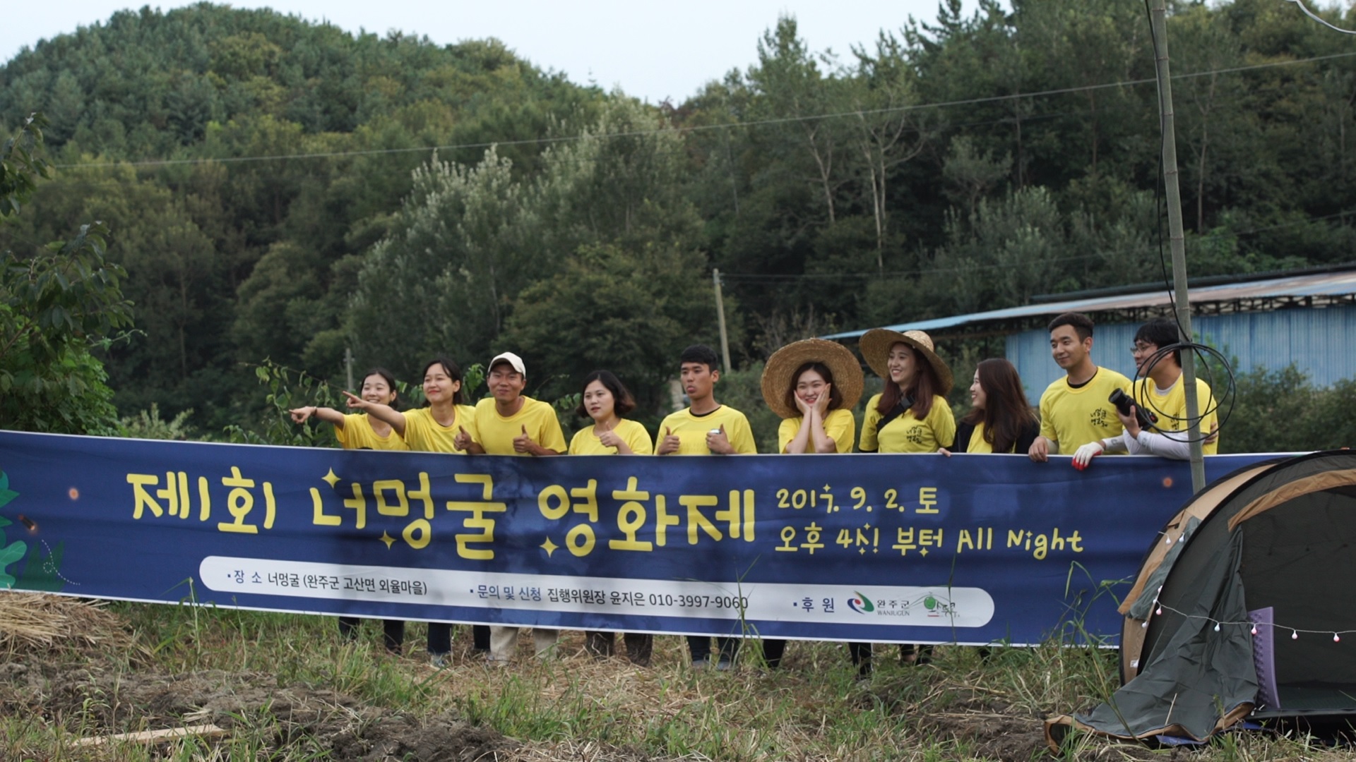2016년 겨울. 대학에서 함께 역사를 전공했으나 각자 다른 길을 선택한 귀농청년과 독립영화 감독은 우연히 술자리를 함께 하며 한 여름 밤 귀농청년 텃밭 너멍굴에서 조그만 상영회를 꿈꾸었다. 전북 완주 너멍굴은 ‘넘은골(산 넘어 골짜기)’이란 뜻으로 마을 중심에서 벗어나 가로등불 전선주가 닿는 마지막 지점을 넘어서야 찾을 수 있는 공간이다. 얼마 전까지 사람도 살지 않고, 농사도 짓지 않던 이 땅에 귀농청년이 들어와 손수 초가집을 지으며 자기만의 세상을 만들고 있었다. 가끔 고라니와 멧돼지가 내려와 외식을 하고 가기도 하는 이곳은 청정 100% 자연의 공간으로 영화감독의 눈에는 매우 매력적인 공간이었다.