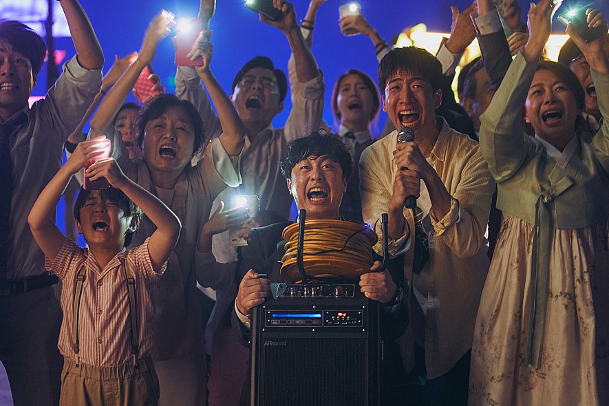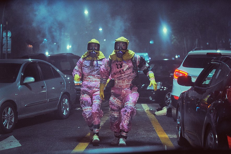 취업난에 허덕이는 용남(조정석)은 매일같이 철봉 운동을 연마한다. 하지만 한적한 동네 놀이터에서 능숙하게 실력을 뽐내 봤자 ‘바보 철봉남’이라는 소리나 들으며 조카에게조차 외면당할 뿐이다. 큰누나 정현마저 취업에 도움이 안 되는 산악 동아리나 했다고 타박을 준다. 시험 준비를 관두고 컨벤션홀에서 일하는 의주(임윤아)도 상황은 마찬가지다. 부점장이라지만 아르바이트와 별 차이가 없는데다 번번이 추근대는 점장까지 마주해야 한다. 하지만 이들의 상황은 그다지 유별나지 않은 일상처럼 여겨진다. 재난을 둘러싼 인식은 취업난보다도 무감하다. 갑작스럽게 재난 문자 알림이 울리지만 호프집 안의 누구도 심각하게 여기지 않는다. 용남의 산악부 선배만이 “너 지금 재난 안에 있어. 우리 지금 상황이 재난 그 자체야!”라며 취업이 되지 않는 처지를 한탄할 뿐이다. 지극히 ‘한국적’인 고희연 회장에서 용남과 의주의 어색한 재회가 이루어지고 나면, 갑작스럽게 유독가스가 도시를 덮치기 시작한다. 그렇게 청년의 현실과 재난은 병치된다.