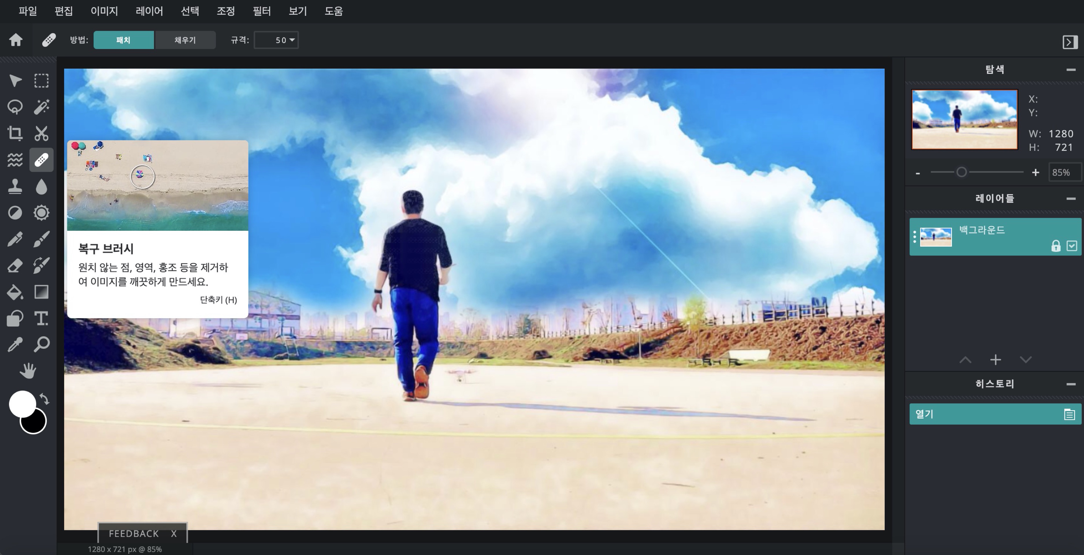 픽슬러 에디터 Pixlr.com : 웹 기반 포토샵. 이미지 편집 소프트웨어인 포토샵의 대부분의 기능을 웹브라우저 상에서 구현할 수 있음. 무료 버전은 유료 버전 대비 기능이 제한적이지만 일반적인 용도로는 충분함.