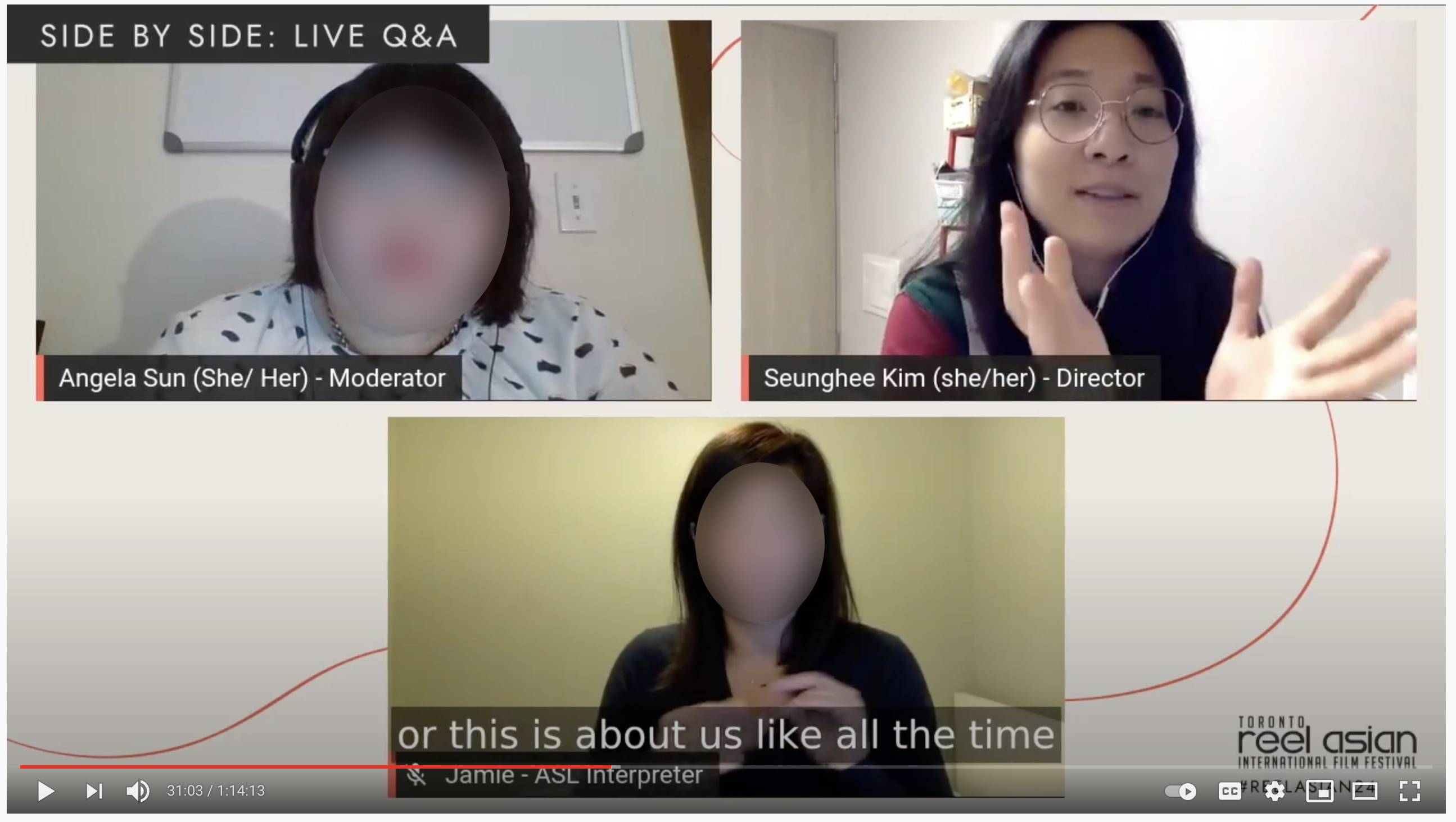 제가 가장 크게 느낀 부분은 장애인 관객들의 접근성입니다. 작년 제가 초청받은 국내 영화제 중에서는 정동진 영화제와 가치봄 영화제가 한글 자막을 지원해주셨습니다. 또, 영문자막과 함께 시각장애인 관객들을 위한 화면해설 파일도 제공이 가능한지 묻는 해외 영화제도 제법 있었습니다. 또 온라인 GV에 수화 통역사님이 함께하는 영화제도 있었습니다. 여전히 접근성이 높다고 말할 수 없지만, 많은 곳에서 노력하고 있는 것을 보았습니다. 감독님도 올해 영어자막과 함께 한글 자막도 만들어 보시는 것은 어떤가요? 분명 의미 있는 작업이 될 것입니다.