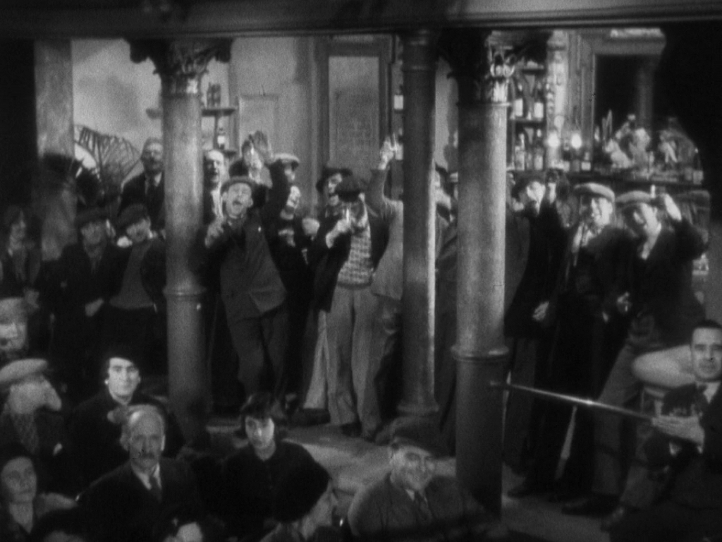 알프레드 히치콕의 <39계단>(1935) 도입부에서 미스터 메모리의 쇼가 펼쳐지던 극장, 가깝게는 <차이니즈 부키의 죽음>(1976, 존 카사베츠), <쇼걸>(1995, 폴 버호벤) 등의 스트립쇼 극장을 떠올려 볼 수 있겠습니다. 자욱한 담배 연기, 쇼맨들을 향한 환호와 야유, 무대와 객석이 한데 어우러지는 춤과 노래 … 영화도 이러한 곳에서 펼쳐진 쇼 프로그램 중 하나였습니다. 따라서 어트랙션 영화에서 등장 인물의 카메라를 향하는 행동은 무대-객석 구도에서 비롯된 관객들을 향하는 제스쳐일 뿐입니다.