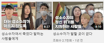 윤오) 영상 콘텐츠도 좋지만 뭔가 오프라인으로 만날 수 있는 이벤트를 하고 싶다는 생각을 계속해요. 프라이드 엑스포 이런 부스에 참여하거나 저희가 퀴퍼에 나가서 팻말 듣고서 막 돌아다닌 것도 그런 거에 대한 빌드업 목적으로 한 측면이 있거든요. 결국에는 사람들을 직접 만나는 게 중요한 게 아닌가 싶어요. 왜냐하면, 영상 콘텐츠라는 게 아무래도 종결되는 지점이라기보다는 시작되는 곳이라는 생각이 많이 들거든요. 사람들한테 이 이슈를 알게 만들 수 있는 것이 될 수도 있고 내가 지금까지 관심을 가지고 싶었는데 어떻게 관심을 가져야 될지 모르는 사람들한테 방법을 알려주는 곳일 수도 있을 것 같고요. 어쨌든 영상을 보고 나서의 행동이 되게 중요한 건데 이 영상을 보고 난 구독자들이 어떻게 생각하는지를 우리 다 같이 나누고 어떻게 해야 될지를 직접 만나서 대화하는 장을 한번 만들어보고 싶다는 생각이 계속 듭니다.