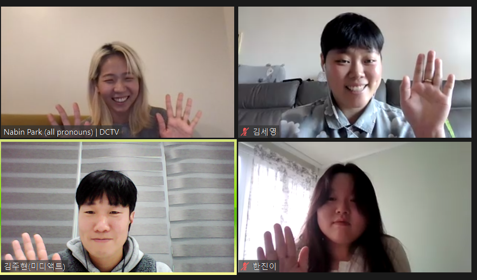 DCTV에서 8년째 일하고 있는 활동가 나빈 님은 DCTV 외에도 퀴어영화제, 퀴어 댄스 동호회 등 다양한 활동을 하고 있었다. 이번 인터뷰가 DCTV 활동에만 국한되기에는 아쉬워서 나빈님이 하고 있는 다른 활동도 함께 물어봤다. 인터뷰는 온라인 화상회의로 진행되었으며 11월 말 어느 날. 한국시간으로는 오전 10시, 미국 뉴욕시간으로는 오후 8시에 진행되었다. 거리와 시차는 컸지만, 이상하게 그리 멀리 있다고 느껴지지 않는 시간이었다.