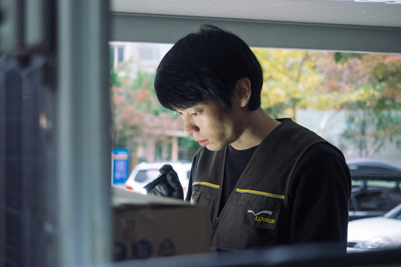 여기에 더해서 <얼굴들>은 시공간적으로 동떨어진 장면을 절합하는 과정에도 정교한 원리를 바탕에 둔다. 이를테면 <얼굴들>에서 가장 당황스러운 감흥을 전하는 몽타주를 살펴보도록 하자. 택배 기사인 현수가 우연히 화물 차량에서 발견한 누군가의 일기장을 펼친 후에, 관객에게 전혀 알려지지 않았고 이후에도 두 번 다시 등장하지 않는 일기장 주인의 플래시백이 펼쳐지는 기이한 장면이다. 하지만 이 뜬금없는 몽타주는 그냥 무연관적인 시퀀스들을 별생각 없이 이어붙인 결과물이 아니다. 영화가 도입부에서 일찌감치 혜진이 전 애인인 기선과 찍었던 사진을 미련 없이 폐기하는 장면을 보여줌으로써 기억과 관계의 연속성을 파기한다는 문제의식을 내비친 바 있다는 점을 유념하도록 하자. 플래시백의 주체와 플래시백의 화자가 서로 상이한 장면을 덧붙인다는 괴상한 발상이 빚어낸 이 독창적으로 부조리한 감각은 기억의 붕괴라는 현대적 문제의식과 의미심장하게 조응하고 있는 셈이다. 게다가 그런 혼란스러운 기억의 조합이 데이빗 린치나 아핏차퐁 위라세타쿤의 영화처럼 초현실주의적인 기교로 성립하는 게 아니라, 그냥 지나가던 택배 기사에 의해 실행된다는 설정 또한, 물류 경제가 기억과 사물의 장기적 일관성을 뒤죽박죽으로 뒤섞어버린 동시대의 일상에 대한 성찰을 건조하게 담아내기 위한 의도적 설계다. 나아가 여기서 데이빗 린치의 <인랜드 엠파이어>처럼, 뒤틀린 시공간의 조합에 경악하는 인물의 리액션 숏 같은 게 뒤따르지 않는다는 점도 간과할 수 없는 디테일이다. 이강현은 현대 도시를 관류하는 미로적 감각을 희석시키지 않고 오롯이 드러내기 위해 리액션 숏이나 직접적 내레이션과 같은 일말의 감상적 장치를 발라낸다. 이 영화에서 유일하게 내면적 내레이션을 들려주는 인물이, 아까 거론한 그 두 번 다시 등장하지 않는 일기장의 주인이라는 점도 이런 부조리의 증상을 심화하기 위한 아이러니다. 이런 요소들은 모두 임의적 연출이 아니라 플래시백의 관습적 형태를 왜곡한다는 지적인 계산 아래 완벽하게 디자인되어 있으며, 심화된 자본주의에 의해 서사적 기억이 소멸한 현실을 반영한다는 영화의 전략과도 효과적이고 유기적인 조화를 이룬다.