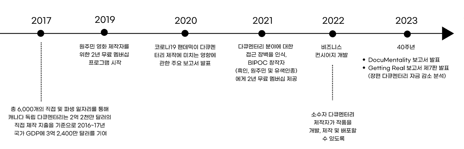 □ 1983년부터 2023년까지의 캐나다 다큐멘터리 조직의 간략한 역사