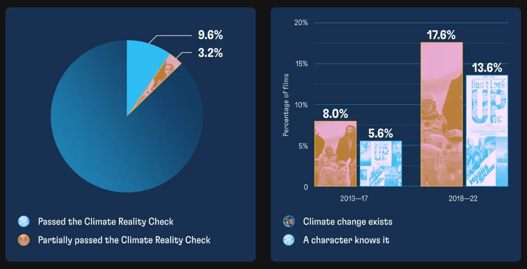 영화에서 기후 변화의 현실이 반영되고 있는지를 확인하기 위해 연구팀은 Climate Reality Check를 사용하여 20213년에서 2022년 사이에 개봉한 가장 인기 있는 영화 250편을 대상으로 체계적인 콘텐츠 분석을 진행했다. 여기서 영화는 극영화만을 선정하였고 2006년 이전을 배경으로 한 영화, 2100년 이후를 배경으로 한 영화, 은하계 공상과학 영화, 하이판타지 영화, 지구를 배경으로 하지 않는 영화를 제외했다.