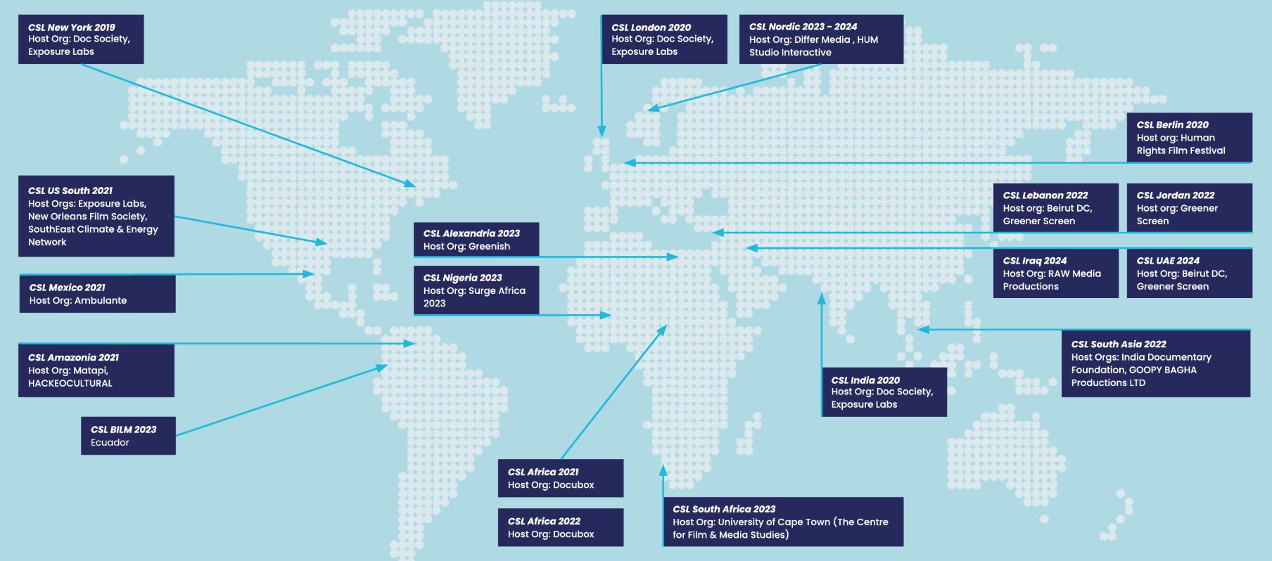CSL은 독 소사이어티와 협력하는 각 지역의 파트너 단체들이 개최하는 방식으로, 지역 네트워크를 소집하여 새로운 서사를 정의하고 고양하는 지역 조직 모임 시리즈를 표방한다. 이들은 지역적 맥락에 맞게 모임을 설계하고 조정하며, 워크숍, 프레젠테이션, 네트워킹 등의 프로그램을 운영하여 기후 스토리텔링과 임팩트 미디어에 대한 실천적 솔루션을 모색한다. 지원 프로젝트는 논픽션 필름, 트랜스 미디어, 다큐멘터리 연극, 보드게임, VR 등 장르의 경계를 초월하며, 이들의 핵심 질문은 아래와 같다.